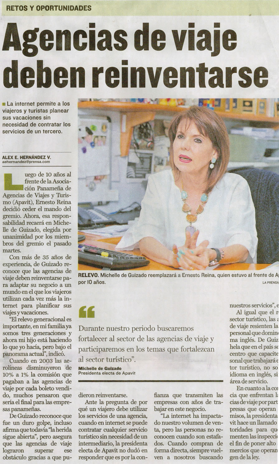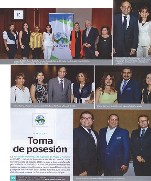 ![]() Apavit tiene nuevo líderLa Asociación Panameña de Angencias de Viajes y Turismo (Apavit) realizó la toma de posesión de su nueva Junta Directiva 2016 presidida por Ernesto Reina. La ceremonia se realizó el pasado jueves 28 de Enero. Ver |